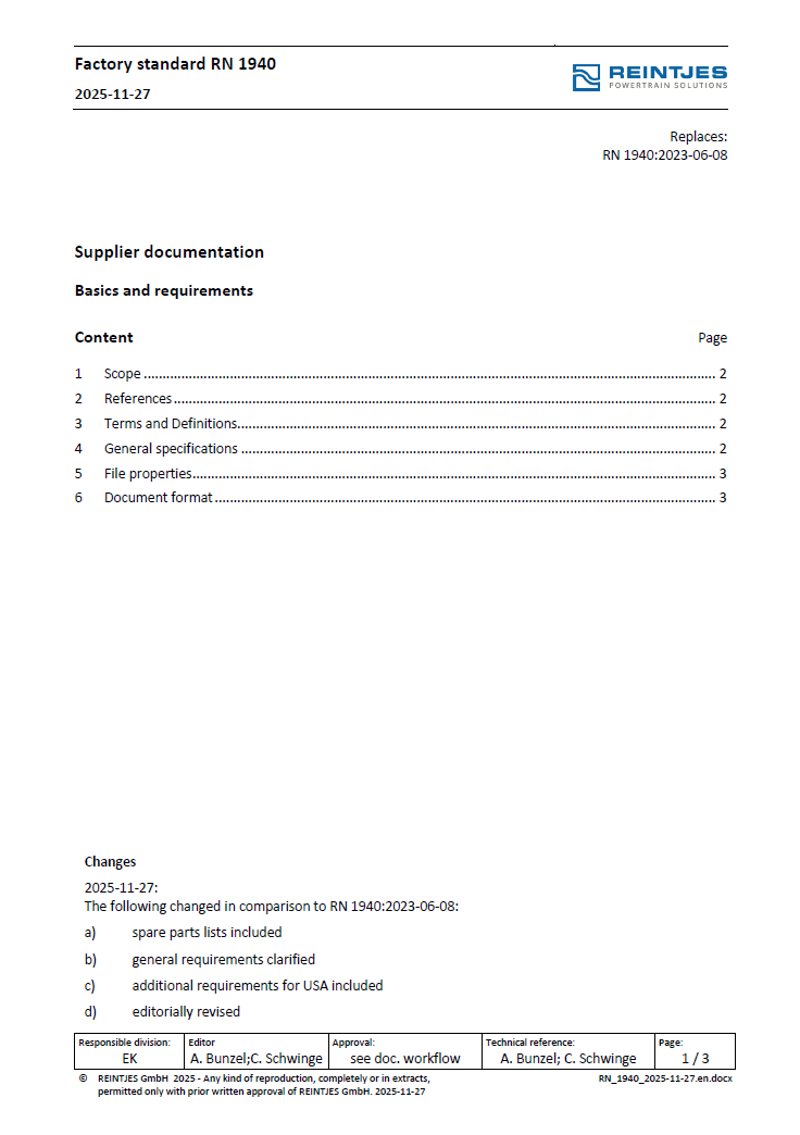 RN 1940: Supplier Documentation; Basics and Requirements