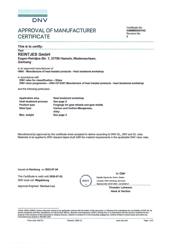 REINTJES products are known for their high quality and long service life. No gearbox leaves the production line without a test run on the in-house REINTJES test stand. Even well-known classification societies are aware of the REINTJES diligence in all process flows.
